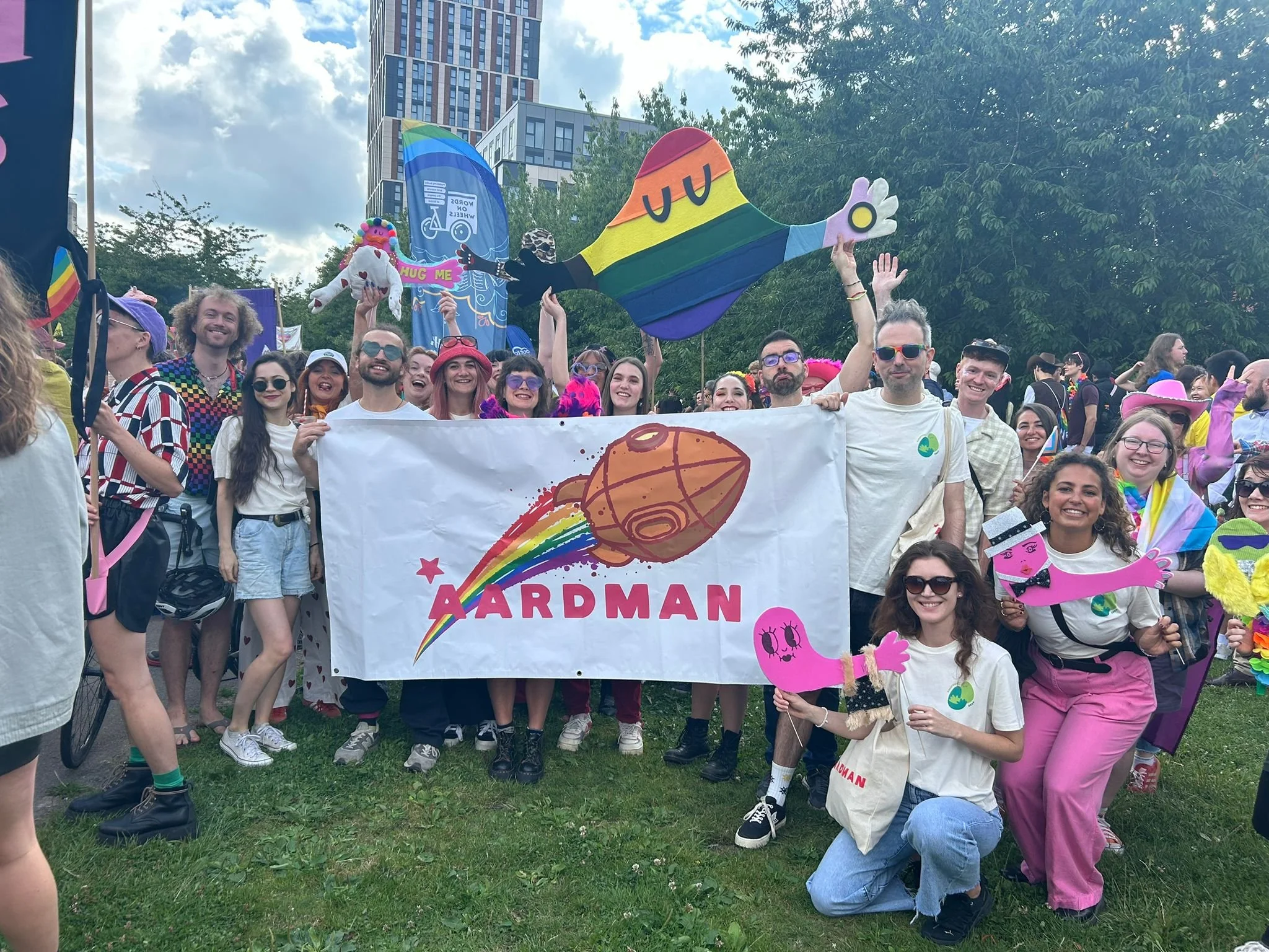 Designer of the Bristol Pride x Aardman T-shirt 2024, included designing and creating a mascot for the procession