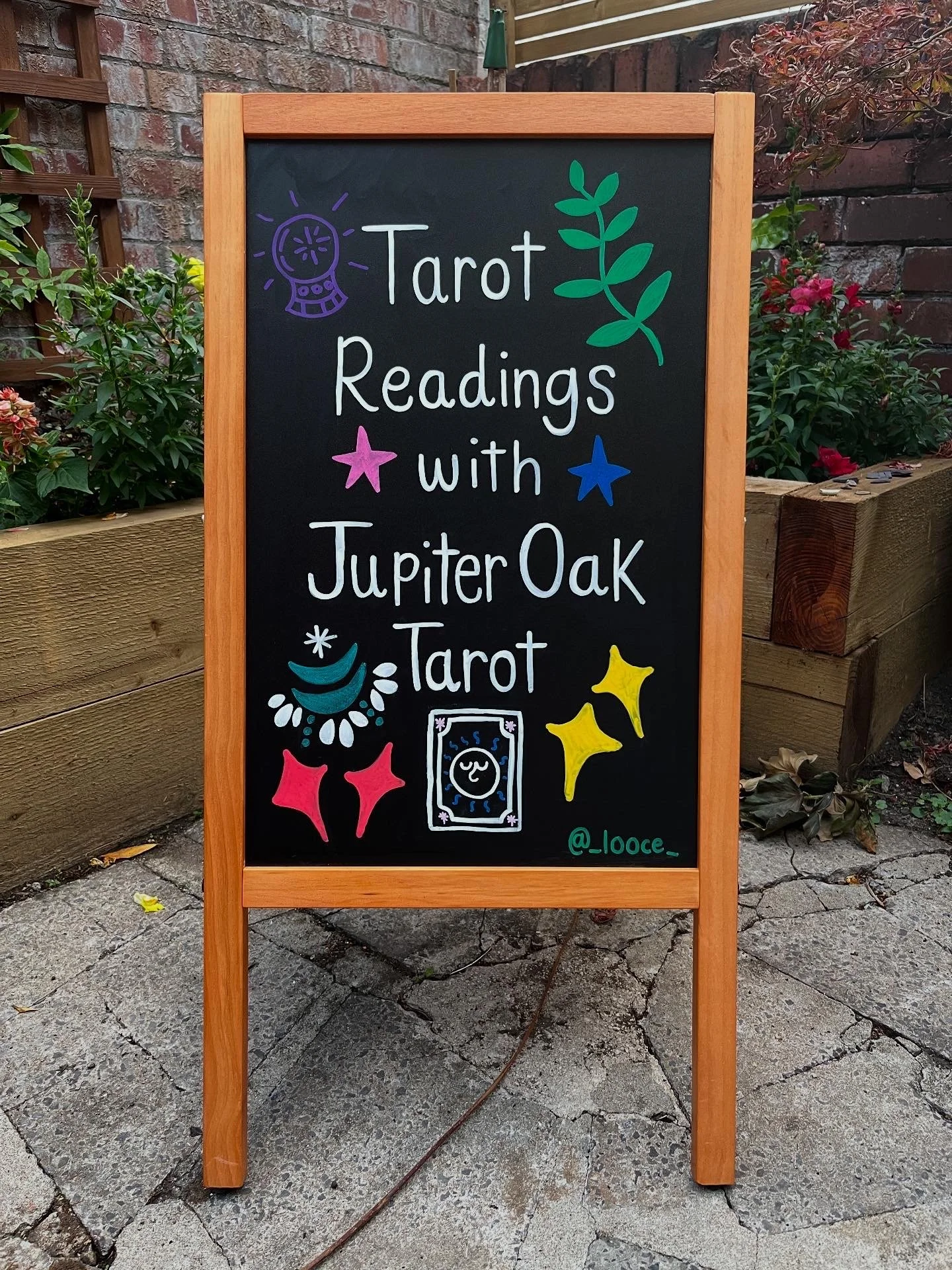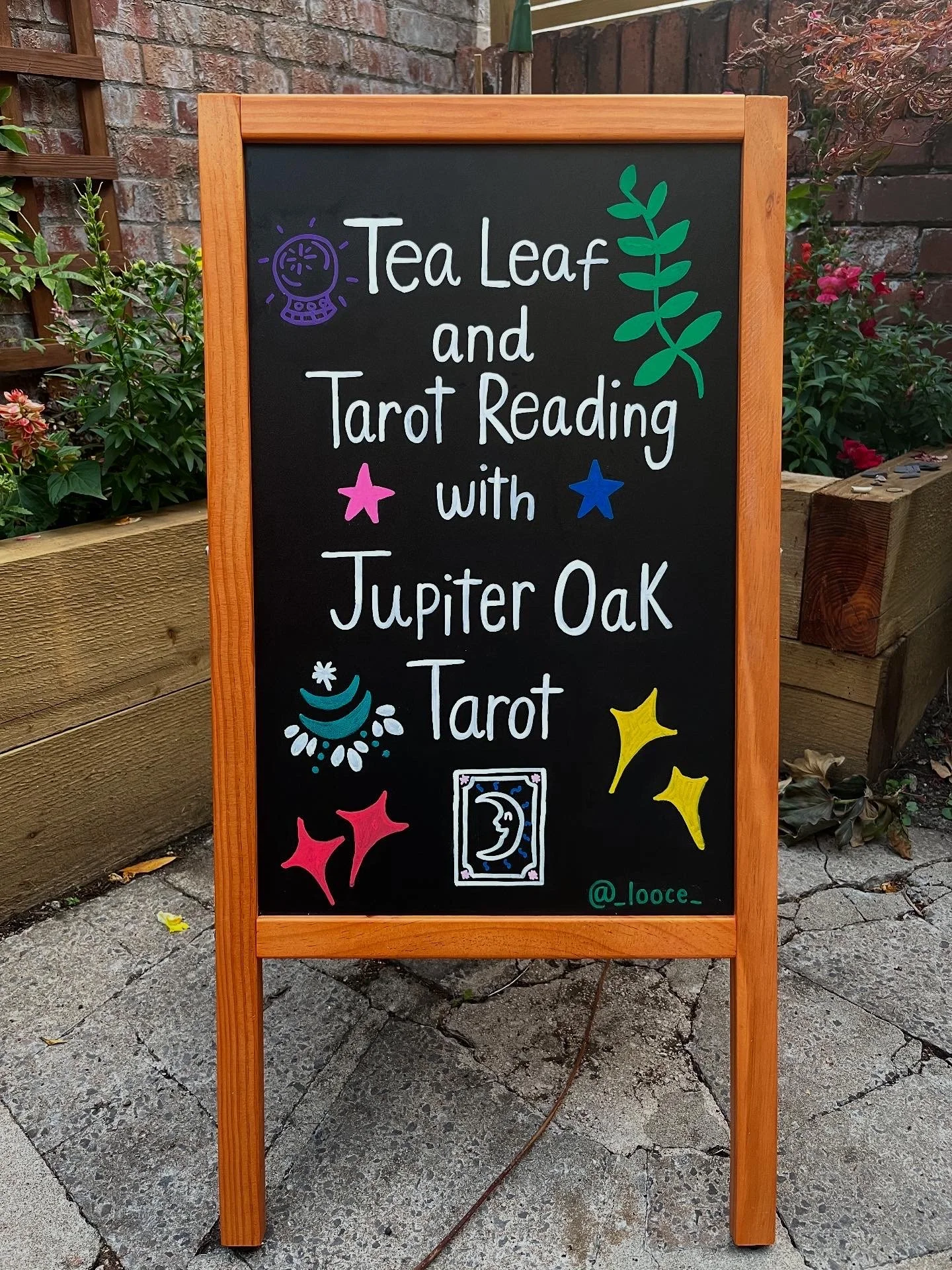 A-Board paintings for Jupiter Oak Tarot, advertising Tea Leaf and Tarot Reading, Bristol